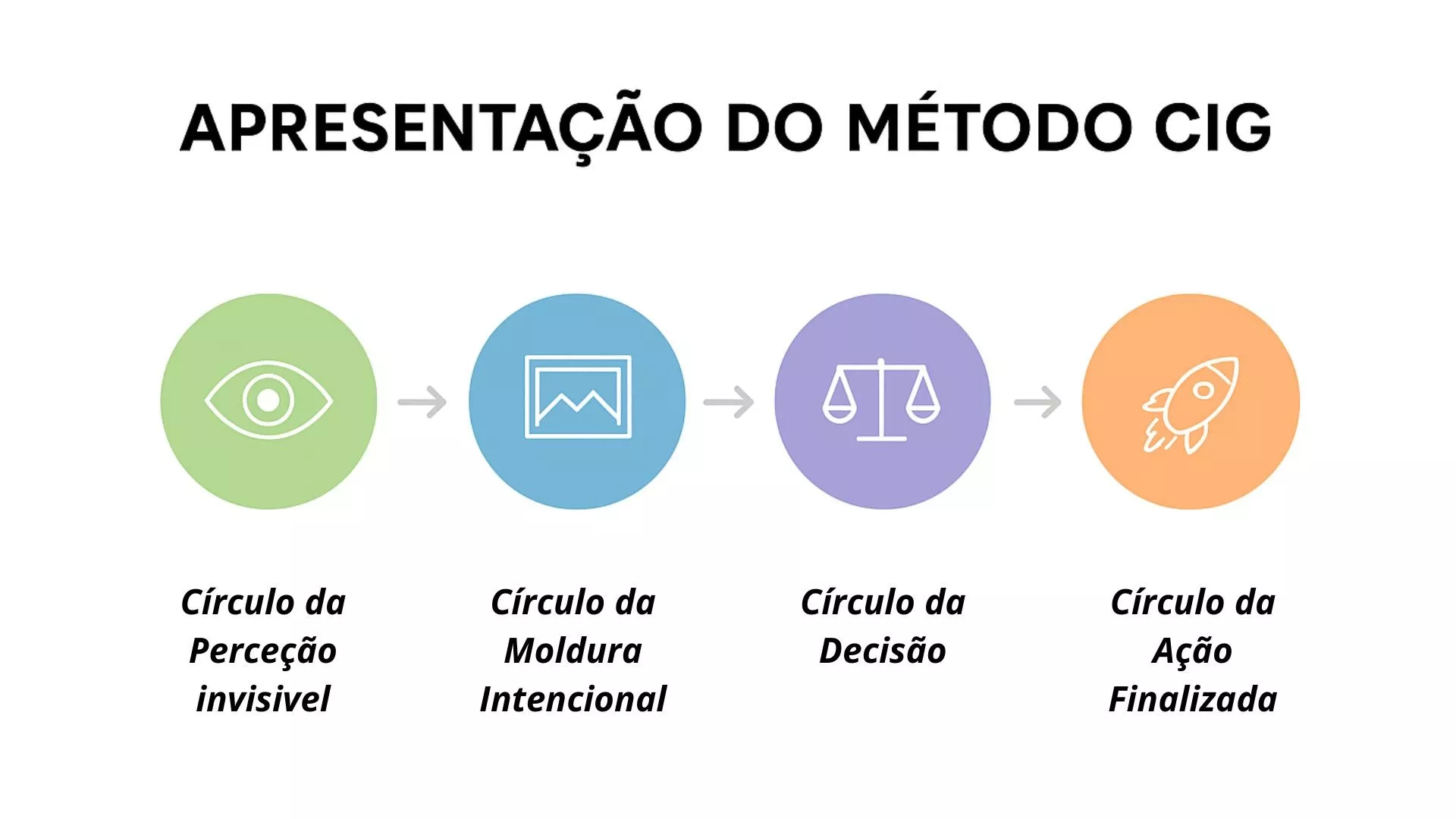 O Método CIG é uma jornada que conduz o cliente do inconsciente à ação, guiando sua percepção, intenção, decisão e execução.